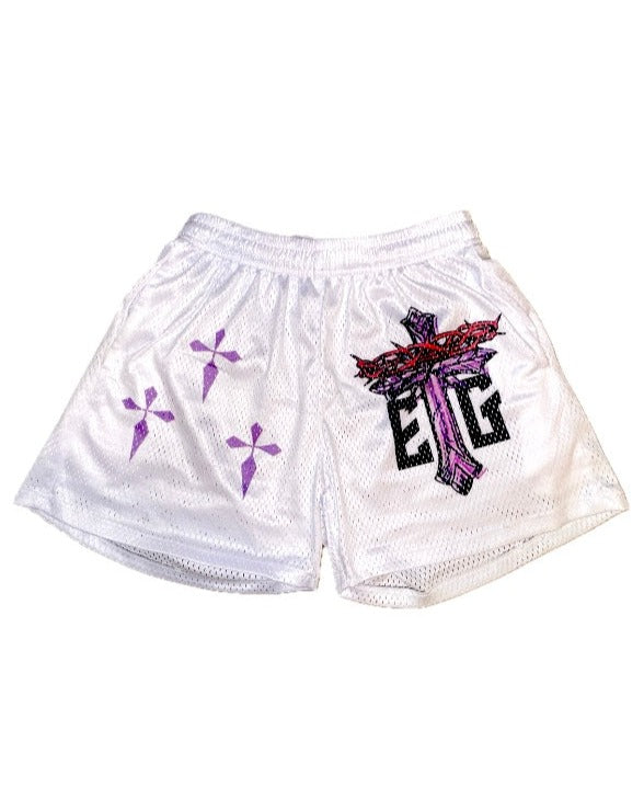 The E.G Mesh Shorts are crafted with a breathable mesh material, allowing for maximum airflow during workouts or casual settings. With a 5-inch inseam, they strike the ideal balance between style and mobility. Whether you're hitting the gym, going for a run, or simply enjoying a laid-back day, the "E.G Mesh Shorts" offer the perfect blend of functionality and spirituality.